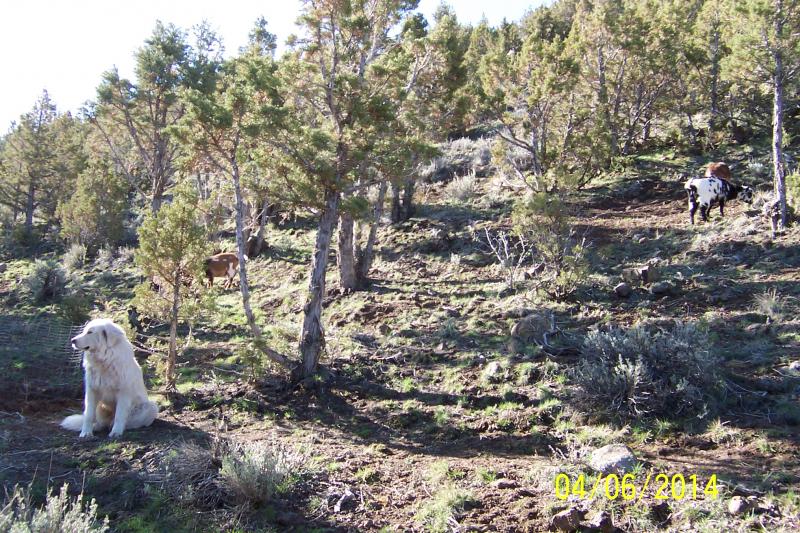 Here at the ranch we also raise LGD's as protectors for our herd. We have found the Great Pyrenees to be the perfect breed for goat protection. They are loyal loving dogs who take their job seriously. They are fearless and fearsome to their enemies. They not only protect their goats, they protect their people, cats, dogs, chickens, children and area of responsibility completely.